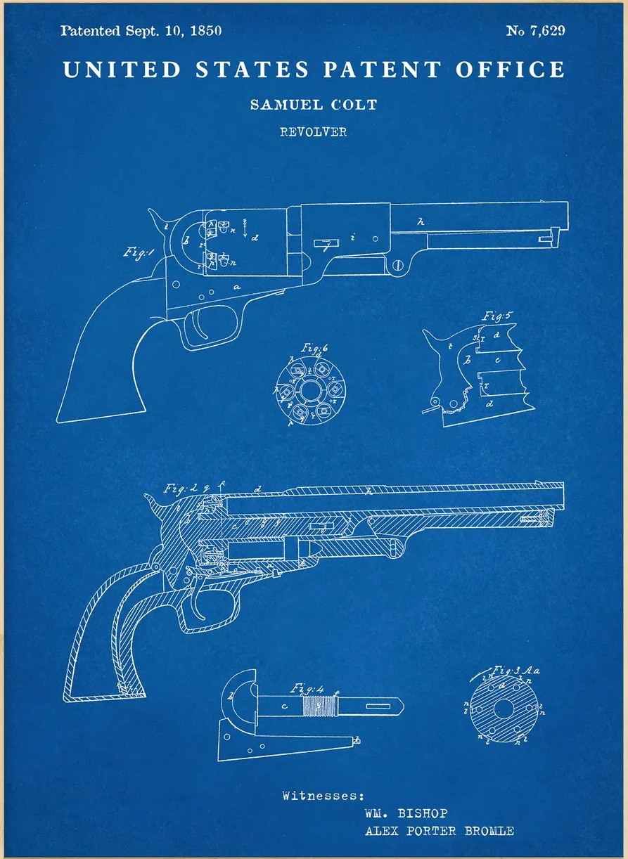 — Colt ne renonce pas pour autant. Il abandonne simplement sa première idée, celle d’une arme à canons rotatifs extrêmement steampunk et extrêmement foireuse. Son coup de génie, c’est de comprendre qu’il n’a besoin que d’un seul canon pour peu qu’on l’alimente avec un cylindre rotatif.